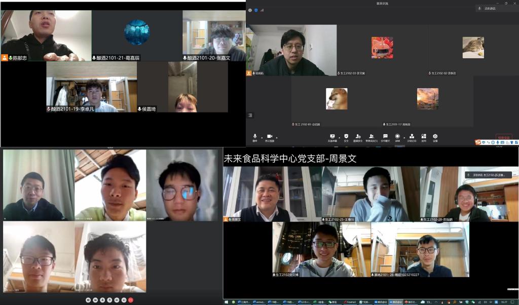 因当下的校园疫情防控政策,各党员教职工采用线上云见面形式进行政策宣讲、关注状态、排忧解难。围绕社会热点、疫情防控、专业科普、现实困难等方面开展思想引导;围绕饮食需求、睡眠作息、心理健康、体育锻炼等方面开展生活指导;围绕网课纪律、难题解答、良好习惯、优秀经验等方面开展学习督导,通过加强情感连接,增进交流实效。学院当前值班领导党委副书记周云龙与对接宿舍同学进行交流,了解情况,分享谈心,并为同学们介绍光影走廊,同学们表示这样的联系形式贴近学生、贴近生活,亲切感十足,受益匪浅。