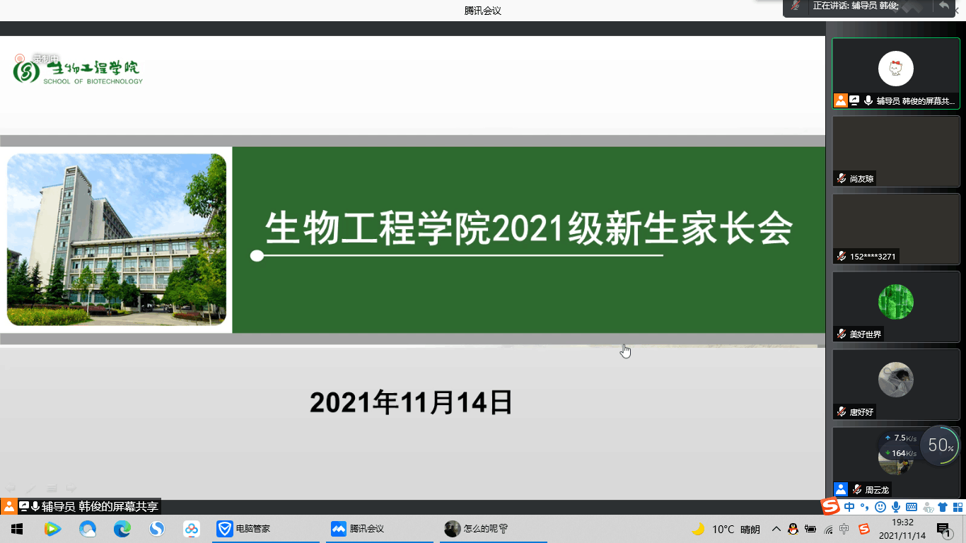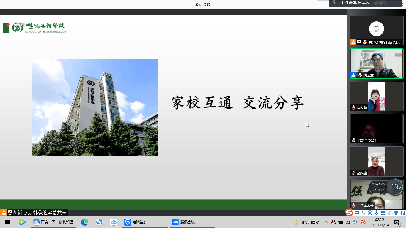 11月14日晚,best365网页版登录官方网站召开2021级本科生线上家长会。学院党委副书记周云龙,2021级辅导员韩俊以及200余名新生家长共话云端。