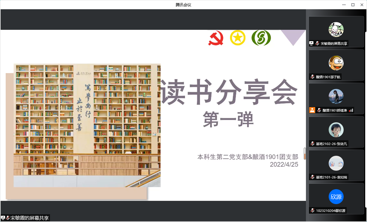 4月25日晚,best365网页版登录官方网站本科生第二党支部、酿酒1901班“赤水河”特称团支部联合举办了“书海遨游拾贝”读书分享会。来自党支部和团支部的5名同学依次分享了推荐书籍,100余名同学聆听分享。在思想碰撞中,大家的视野得以打开,收获颇丰。