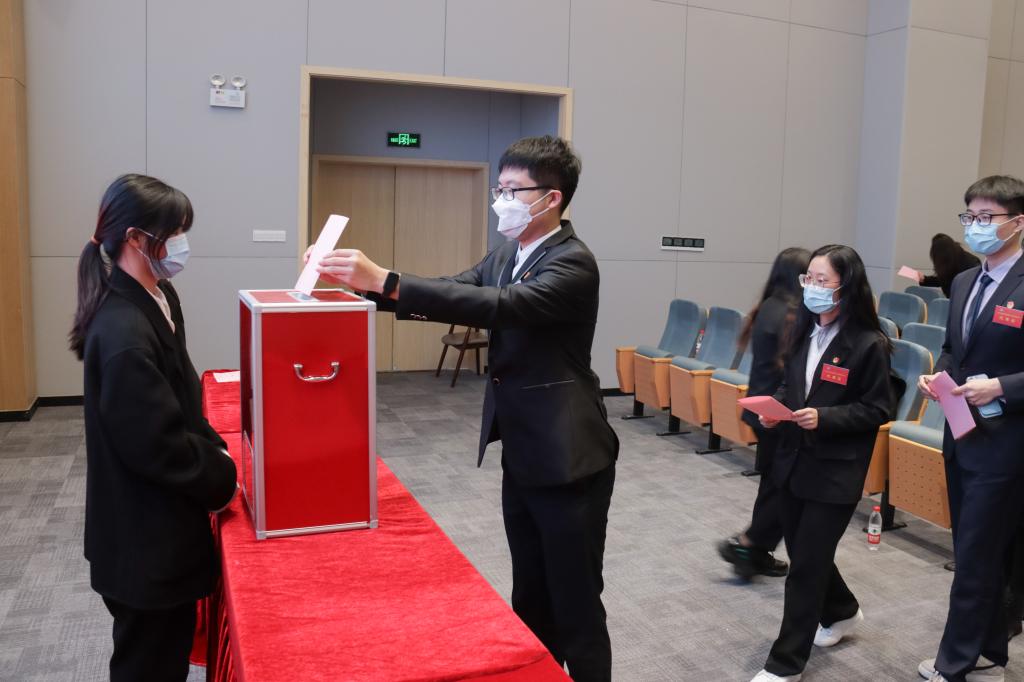 计票期间,校发展规划与学科建设处副处长马素伟为我院学生骨干做了题为《逐梦前行,奋进未来》的专题报告。马老师从校“奋进计划”制定的背景、主体框架和重点任务谈起,围绕“一个目标”“两项行动”“三大体系”“四项工程”“五类指标”为代表们深入解读了学校未来的发展愿景,并就学生密切关注的问题予以正面回应。他指出,“奋进计划”是学校放眼十年、面向未来的重大引领性目标计划,需要全体江南人踔厉奋进。与会代表们纷纷表示“奋进计划”鼓舞人心,自己定会立足学生本职,主动作为,不断增强个人责任感和使命感,以主人翁态度推进“奋进计划”的贯彻落实。