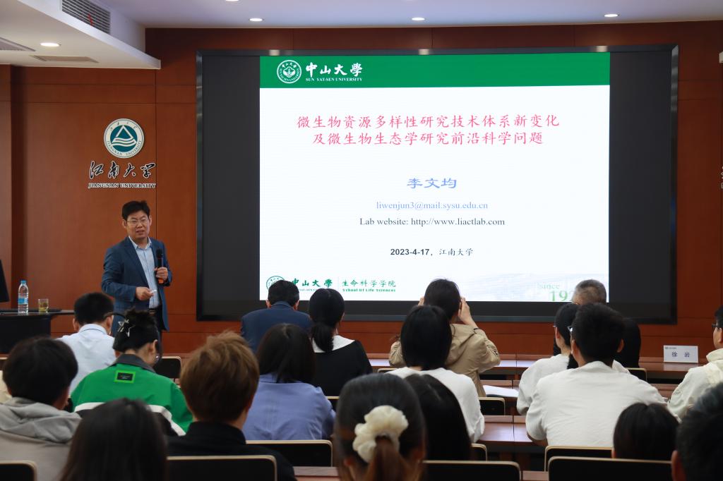 4月17日,中山大学生命科学学院百人计划/珠江学者、逸仙学者特聘教授李文均做客第一百零三期朱宝镛大讲堂,以“微生物资源多样性及微生物生态学研究前沿科学问题及技术体系新变化”为题,为best365网页版登录官方网站师生讲述了未/难微生物可培养研究的最新进展。讲座由best365网页版登录官方网站院长刘龙教授主持,近百名师生聆听讲座、参与互动,气氛热烈。