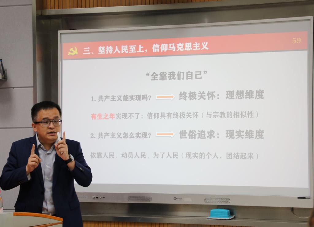 5月23日,“青马工程”培训班理论学习系列讲座第三讲,由best365网页版登录官方网站马克思主义学院唐忠宝教授以《学习新思想坚定理论自信》为题开讲。唐忠宝教授围绕学习贯彻习近平新时代中国特色社会主义思想,以党的二十大精神为切入点,聚焦“十个明确”的精神实质和丰富内涵,重点从“反对历史虚无主义”“坚持中国式现代化”“信仰马克思主义”等方面着眼分析,以当今网络热点话题讨论为案例开展解读和交流,旨在深入浅出地以年轻人喜闻乐见的宣讲形式和思维方式,向青马班学员传播新时代新思想,引导广大青年树立正确价值观、厚植爱国情怀,与国家同呼吸、与人民共命运,唐忠宝教授的精彩分享为全体学员带来一场耳目一新的思想盛宴。