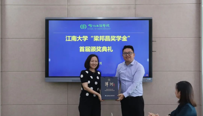 惠赠仪式上,梁广友向学院赠送了“梁邦昌先生从事酿酒事业62周年纪念酒”,程捷音代表学院接收惠赠。随后举行奖学金颁奖仪式,徐岩和梁广友分别为获奖学生发放证书,赠送纪念酒。座谈交流中,获奖学生王露露、郜子航分享了自身学习、科研情况,并表示会传承梁老先生的精神,尽己所能回馈企业、回馈社会。