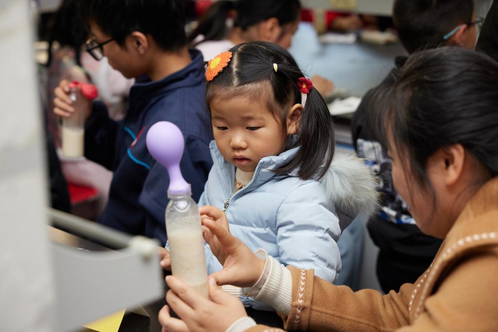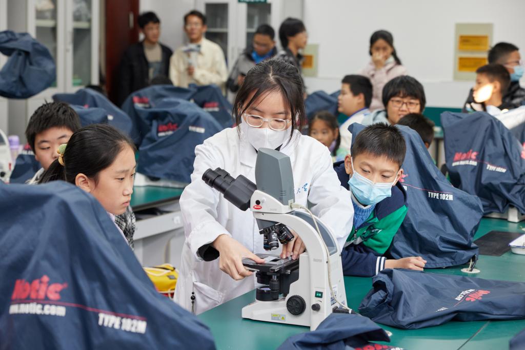 随后,在best365网页版登录官方网站实验教学平台、食品发酵国家级实验教学示范中心,生工2101团支部同学为小朋友们精心设计了“洋葱表皮细胞质壁分离”和“酵母吹气球”两个实验。“质壁分离”实验中,在显微镜下观察到滴加蔗糖溶液的洋葱紫色的原生质体从与细胞壁紧密贴合,再与细胞壁分离开并逐渐变小,颜色逐渐加深。而在“酵母吹气球”实验中,气球在酵母的“努力”下逐渐膨胀变大。两个小实验充分激起了小朋友们对微观生物世界的兴趣,感受到生命科学的奇妙。