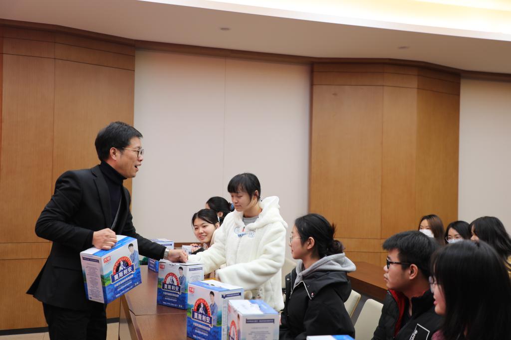 活动最后,老师们为同学送上学院准备的牛奶礼盒,在十二月的寒冬为莘莘学子带来温暖。同学们切实感受到来自学院和老师的关心与鼓励,纷纷表示将会坚定信心、认真复习,尽最大努力取得这场“考研攻坚战”的胜利。