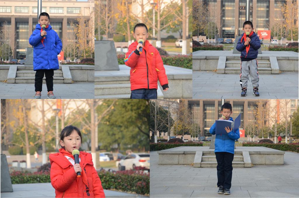 演讲结束后,来自尚贤融创小学的史天骁、吴海琛、夏业真,分别朗诵了《满江红》、《出塞》和《忆江南》三首古诗词。他们铿锵有力地朗诵,歌颂了岳飞等古代名将的精忠报国之志,赞美了无锡等江南水乡的怡人的风景,表达了对祖国大好河山的热爱和立志报国的决心。