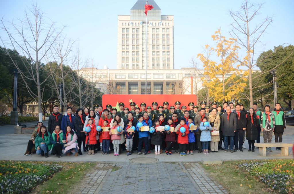 活动最后,周云龙副书记和饶义剑教授为参加活动的小朋友们颁发升旗仪式证书和纪念品,并在活动展板处与国旗合影留念。