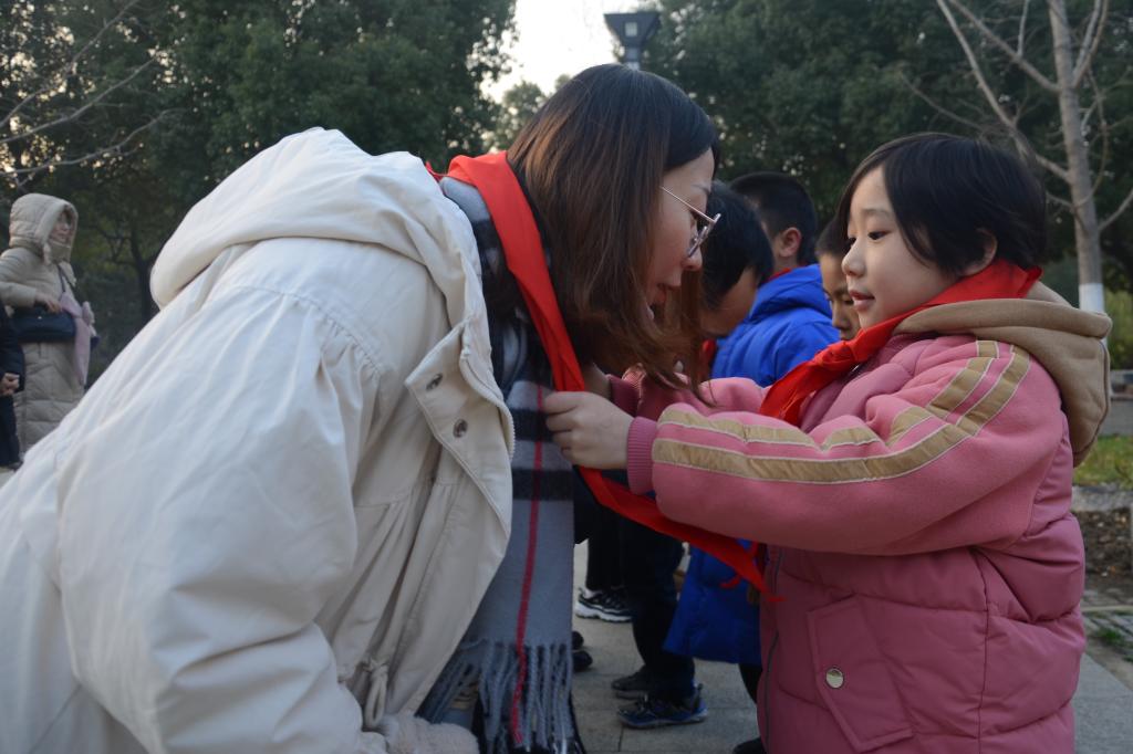 7点30许,伴随着激昂的《中国少年先锋队队歌》,活动正式开始,来自和畅小学、育红山水小学、尚贤融创小学的10名少先队员为家长和嘉宾敬献红领巾。随后,在国旗班成员的带领下,他们共同组成护旗方阵,迈着整齐的步伐,一同出旗、护旗。在庄严的《义勇军进行曲》声中,五星红旗冉冉升起,顺利完成了升旗任务。