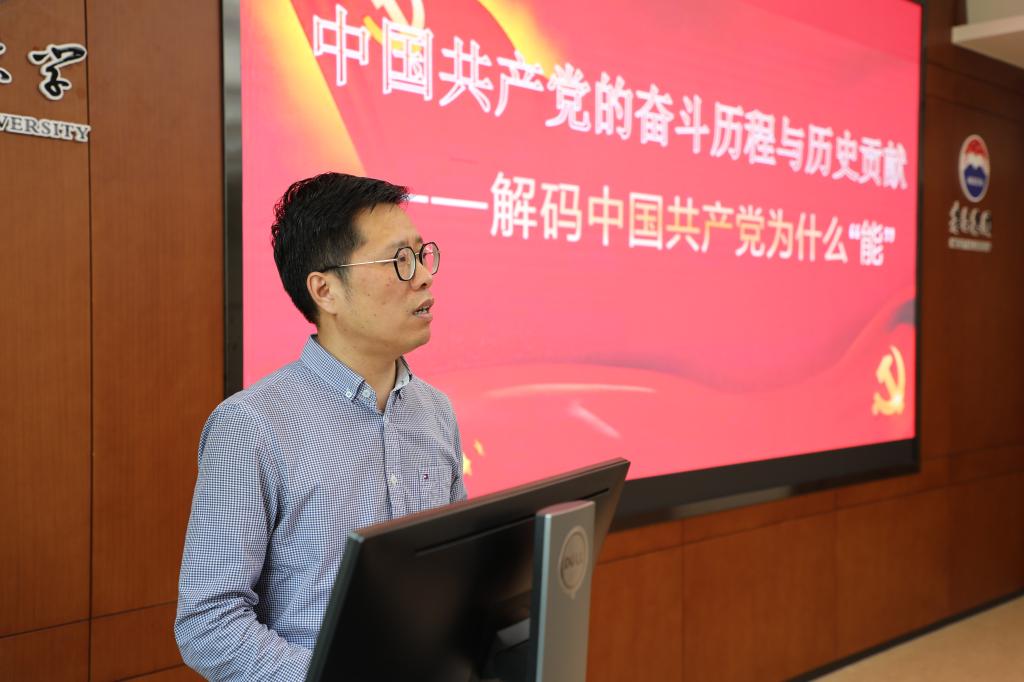 不忘来路,以史鉴今。5月21日,best365网页版登录官方网站党委副书记周云龙在茅台厅为酿造微生物与应用酶学研究室党支部党员讲授党史学习教育专题党课《中国共产党的奋斗历程与历史贡献——解码中国共产党为什么“能”》。