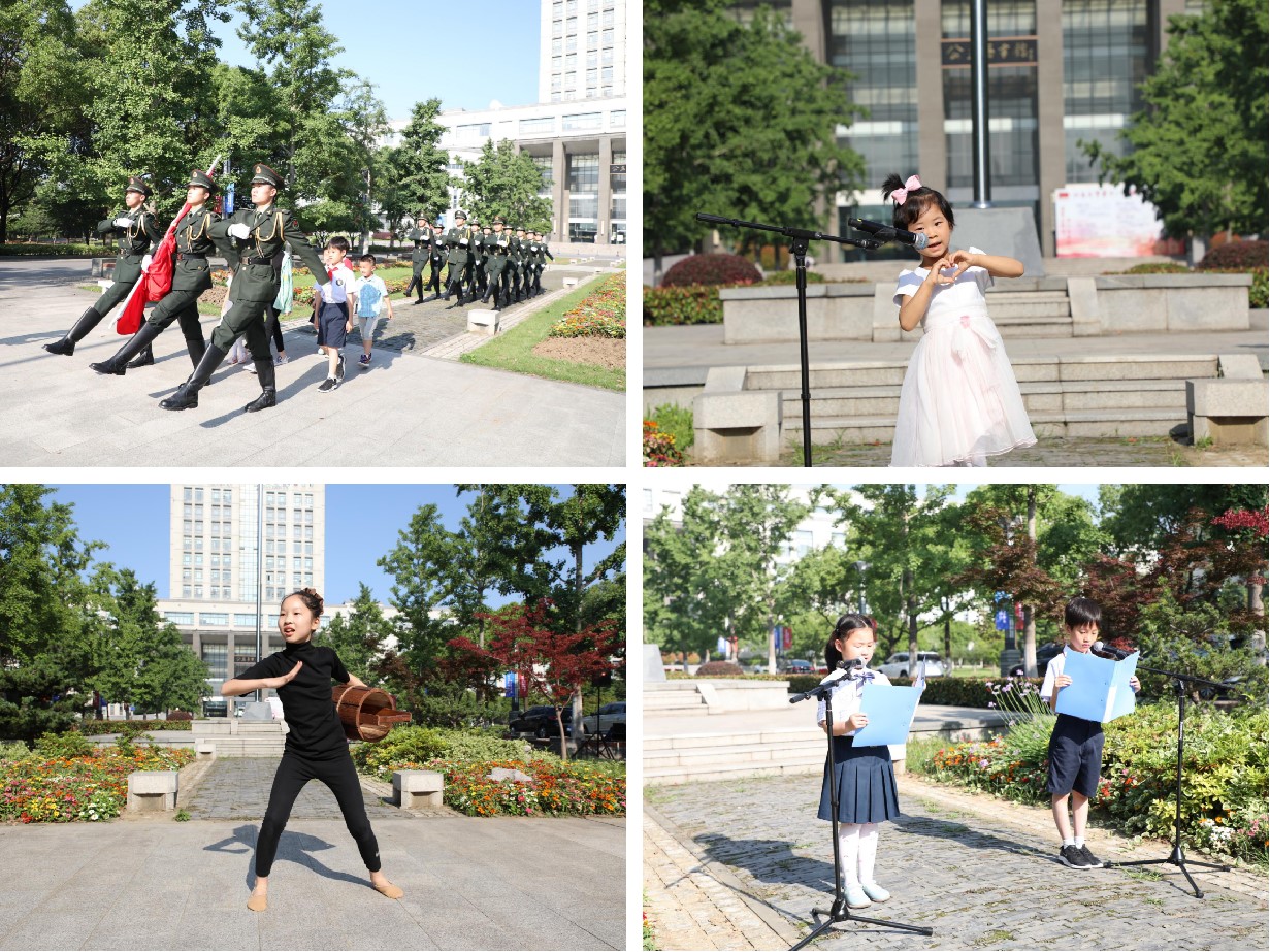 随后,来自融创尚贤小学的董雯沁小朋友和金桥小学的向东铭小朋友带来国旗下朗诵《七月的天空》,深深表达了对中国共产党的崇敬与感激。滨湖实验幼儿园中班的周子琪小朋友带来国旗下演唱《听我说谢谢你》,共同感受世界的美好,生活的快乐和幸福的传递。外国语小学的刘滕腾小朋友带来了舞蹈《我心中的河》,优美的舞姿展现了有理想、有本领、有担当新时代好少年的良好精神面貌。在手绘党旗,童心向党环节中,小朋友们一笔一划,认真着色党旗图纸,表达了记党恩、跟党走,报效祖国的心中志向。