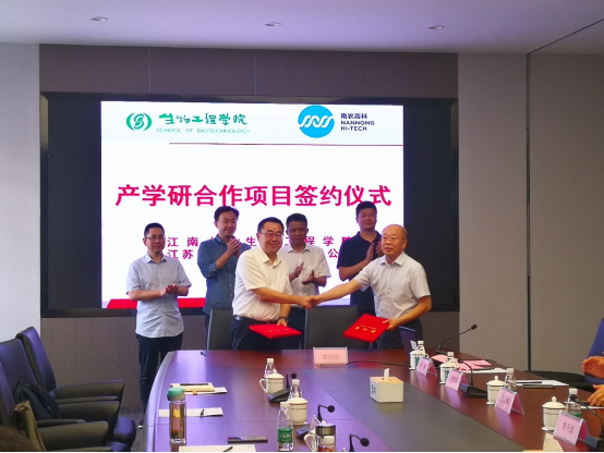 10月10日,best365网页版登录官方网站党委书记王维、院长许正宏、药学院教授史劲松一行赴江苏南农高科技股份有限公司进行考察交流并开展产学研合作项目签约。南闸街道党工委书记李志浩、办事处主任费天雄及相关部门负责人,南农高科董事长周成、总经理韩耘及公司研发中心负责同志共同参加交流会。会议由南农高科副总经理周琳主持。