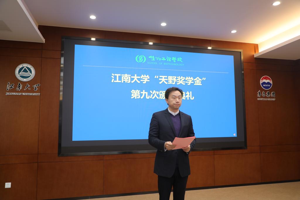 毛馨竹、胥睿睿、张玉鹏等18名同学分获一、二、三等奖学金,植物基蛋白肉团队获评特别奖。毛馨竹发言时提到她在食品合成生物学与生物制造团队的学习、科研经历,并对天野酶制品株式会社的资助、best365网页版登录官方网站的培养表示感谢,表示一定发扬江南风格中争创一流的攀登精神,努力为实现发酵工业强国梦贡献力量。