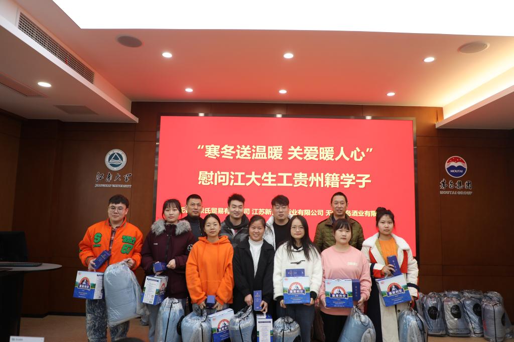 座谈会结束后,荣嵘一行向同学们赠送慰问品并合影留念。整个活动洋溢着家的氛围,在一片欢声笑语中圆满结束。此外,为帮助家庭经济困难学生顺利完成学业,无锡市荣氏贸易有限公司、江苏新百通酒业有限公司、无锡云岛酒业有限公司还对best365网页版登录官方网站16名家庭经济困难学生进行了爱心资助。