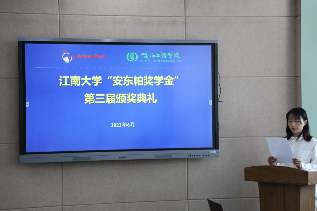 首先,李崎宣读第三届“安东帕奖学金”获奖名单,钮成拓、陈献忠、李崎分别为三等奖、二等奖、一等奖获得者颁发了获奖证书。颁奖环节结束后,学生代表酿酒1902班林玉琪发表获奖感言,她从专业学习、科创竞赛等方面汇报了自己大学三年来取得的成绩,并向安东帕公司表达了诚挚的感谢。安东帕是一家总部位于奥地利,拥有百年历史的跨国企业,在密度和浓度测量,溶解二氧化碳的测定,以及在流变学和粘度测量领域处于世界领先地位。程张红向在场的老师、同学介绍了公司的历史、业务情况。她还介绍了安东帕公司开拓创新、精益求精、高标准高要求的企业文化。她希望同学能努力学习,砥砺奋斗,取得更大的进步。随后,陈献忠代表best365网页版登录官方网站致辞,他向安东帕公司对学院人才培养工作的支持表示感谢,对获奖同学表示祝贺。他从多个角度向企业同仁介绍了学院一流学科建设情况,尤其是学院近年来在人才培养、产教融合等方面取得的成绩,并希望能与安东帕携手同行,加强合作,共面新机遇,同迎新挑战,共创美好未来!自由交流环节,学生代表贯中正就自己的创业项目——都深精酿进行了介绍,双方就酿造行业发展,精酿啤酒市场等话题展开了讨论。