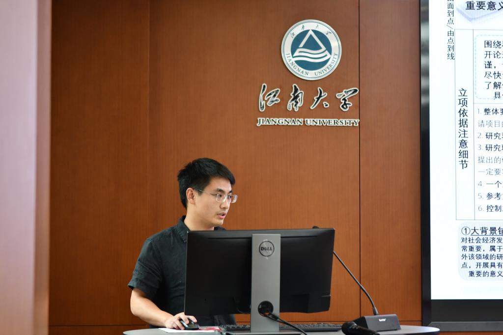 在专题报告环节,董亮亮副教授结合自身工作经验,详细讲解了国家自然科学基金各项目类型及申报要求、项目评审流程、高质量申报书撰写等方面的内容,重点对申报书各部分内容的关键点和注意事项进行了指导。饶志明教授分享了多年的项目申报经验,并以其团队新获批的面上项目和青年基金项目为例,结合具体内容,讲解如何写好项目申报书、更好展示项目特色和创新之处。之后,新获批2023年青年基金项目的胡金远博士分享了青年基金项目申报的心得体会,梳理了申报书撰写过程及各部分内容的逻辑联系。