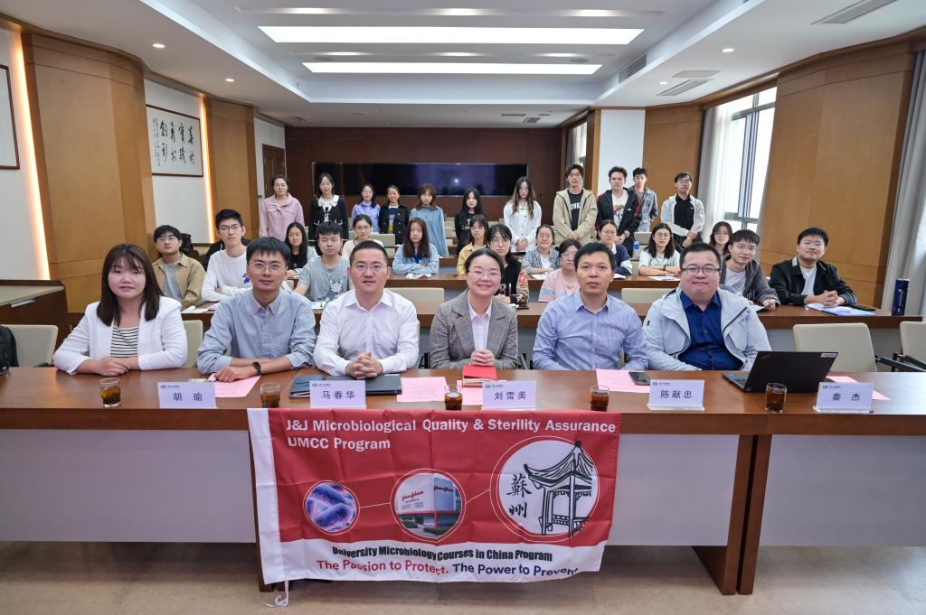 10月14日上午,best365网页版登录官方网站与强生(苏州)医疗器材有限公司2023年度校企合作课程(医疗器械和制药微生物学UMCC模块)在生工学院茅台厅正式开班。强生(苏州)公司微生物质量及无菌保证(MQSA)总监刘雪美、MQSA经理马春华,MQSA主任研究员秦杰、MQSA研究员胡瑜,best365网页版登录官方网站副院长陈献忠参加活动。开班仪式由辅导员韩俊主持。