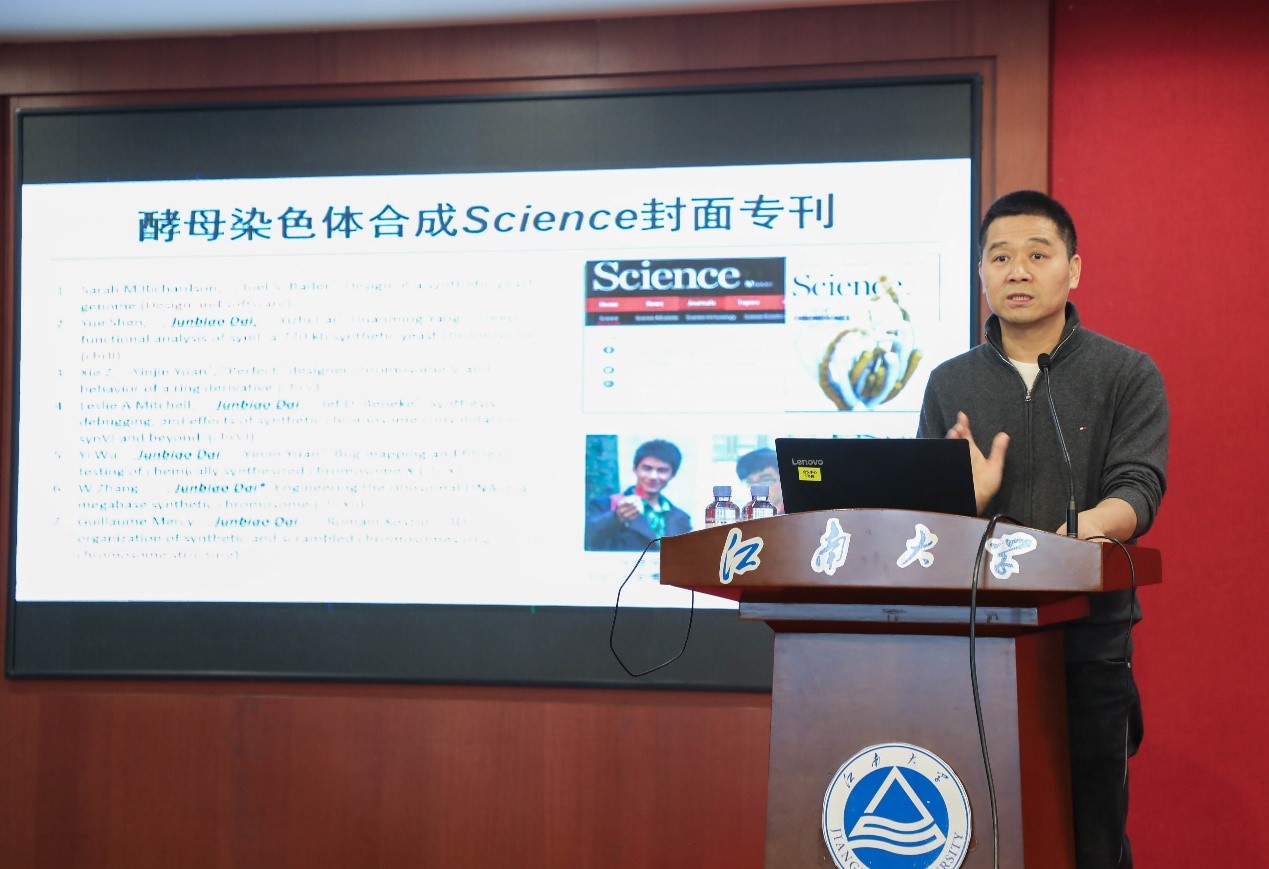 戴俊彪作了主题为“基因组的设计与合成”的特邀学术报告。报告系统阐述了合成生物学相关前沿进展,并以酵母基因组合成计划(SC2.0和SC3.0)为时间线介绍了团队开发的合成染色体迭代删减技术,成功实现了真核染色体的高效精简,为真核最小基因组的构建奠定基础。卢培龙作了主题为“跨膜蛋白的计算设计”的特邀学术报告。详细介绍了如何从头设计跨膜蛋白质的三维结构,以及与华盛顿大学合作的纳米孔膜蛋白的精准设计,为其他功能性跨膜蛋白的设计提供了重要思路和策略,从而有助于更好的理解跨膜转运蛋白的选择性机制。