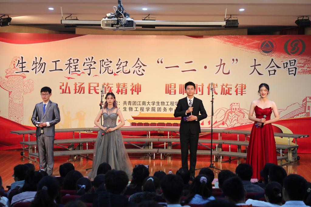 比赛上半场,五支队伍相继登台演唱,气势如虹的歌声、交错呼应的声部、整齐划一的动作,各参赛队伍以嘹亮的声音与良好的精神风貌唱出了豪迈的气势,一次次将现场的氛围推向高潮。中场环节,由best365网页版登录官方网站主持团队带来的朗诵《岁月·铭记·家国》,带观众们重温了那段难忘的峥嵘岁月,歌颂了当下美好的新时代。