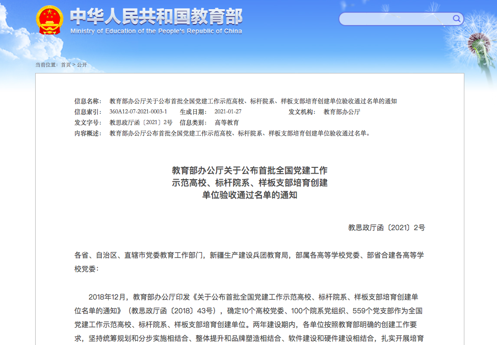 日前,教育部办公厅发布了《关于公布首批全国党建工作示范高校、标杆院系、样板支部培育创建单位验收通过名单的通知》。best365网页版登录官方网站党委经对标自查总结、上级党组织满意度测评、属地教育工委把关复核、教育部思想政治工作司审查,顺利通过验收。