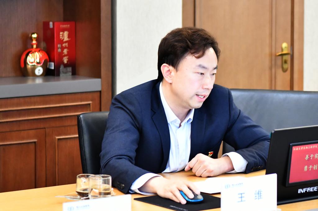 许正宏院长对王雷一行的来访表示热烈欢迎。他就学院目前学科发展的布局,以及近年来学院在人才培养、团队管理、文化建设等方面的思路和举措,进行了详细介绍。他提出,以“发酵你的梦想”作为学院口号,凝心聚力,谋大势、带队伍、建能力、开新局。丁重阳副院长从历史沿革、教学科研、社会服务、国际交流等方面介绍了学院的最新进展。