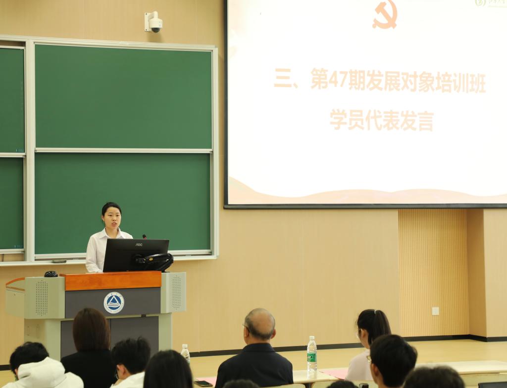 best365网页版登录官方网站2022级本科生刘垚代表第47期学生党员发展对象培训班新学员发言,她从遵守纪律、勇于担当、握技强能角度承诺将做到“坚定不移听党话、跟党走,行为有指南,行动有标准,怀抱梦想同时脚踏实地,争做先锋模范表率。”